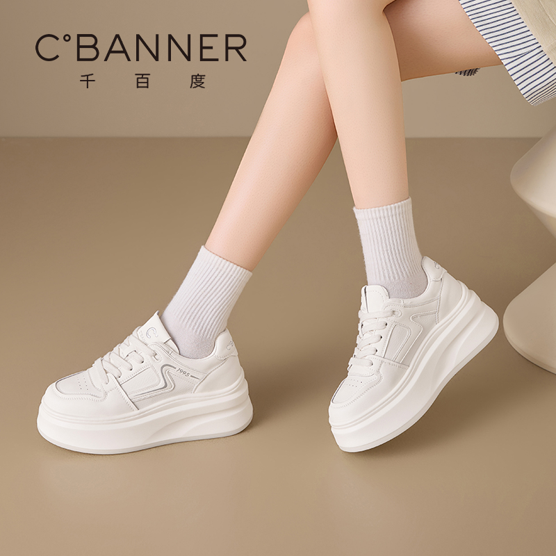 女2025秋季 舒适板鞋 新款 百搭厚底增高波纹休闲鞋 时尚 千百度小白鞋