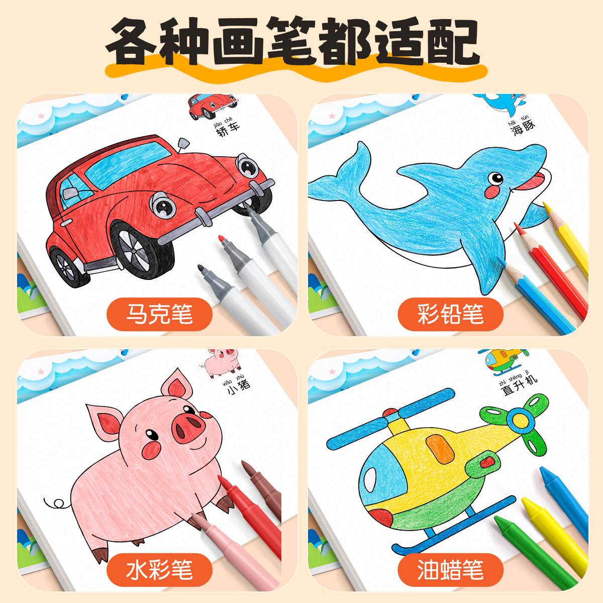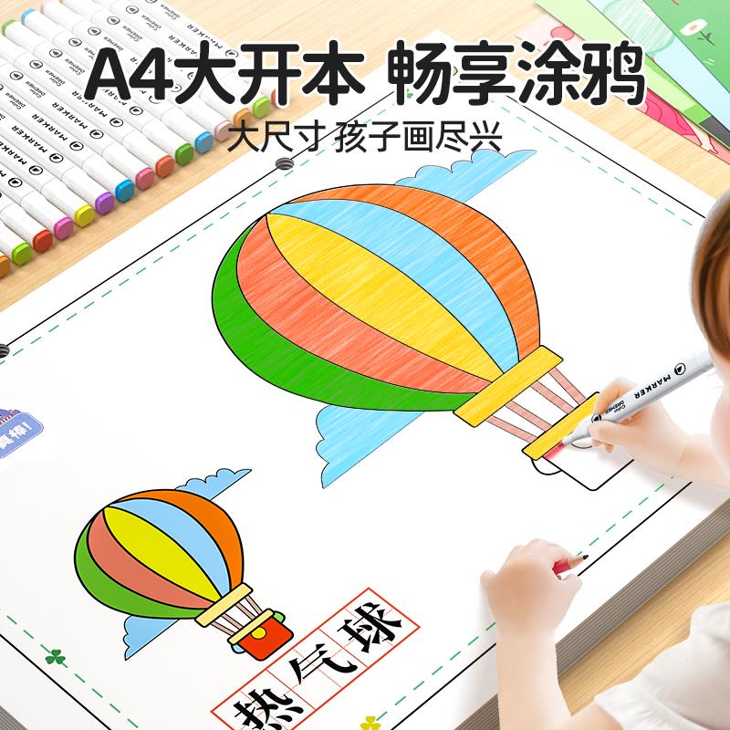 儿童涂色书画画本幼儿园马克笔涂鸦填色绘本图画3岁6宝宝绘画套装