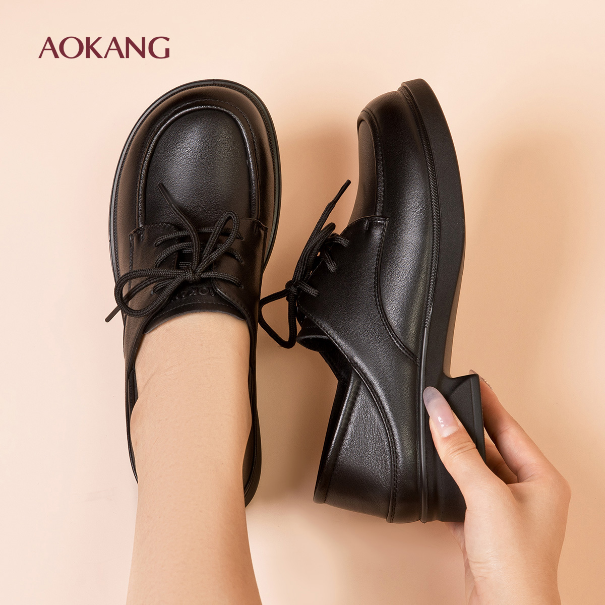女鞋 不累脚系带复古小皮鞋 2025秋季 真皮软底乐福鞋 新款 奥康