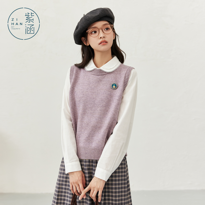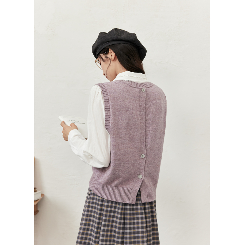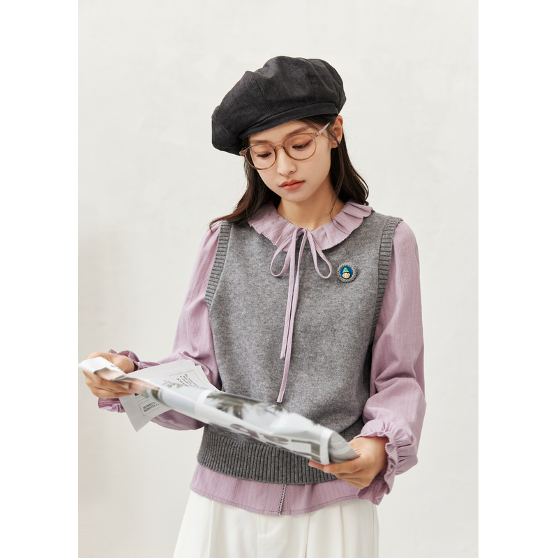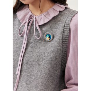 慵懒宽松V领上衣 新款 OSA欧莎复古提花背心马甲针织衫 女2025年秋季