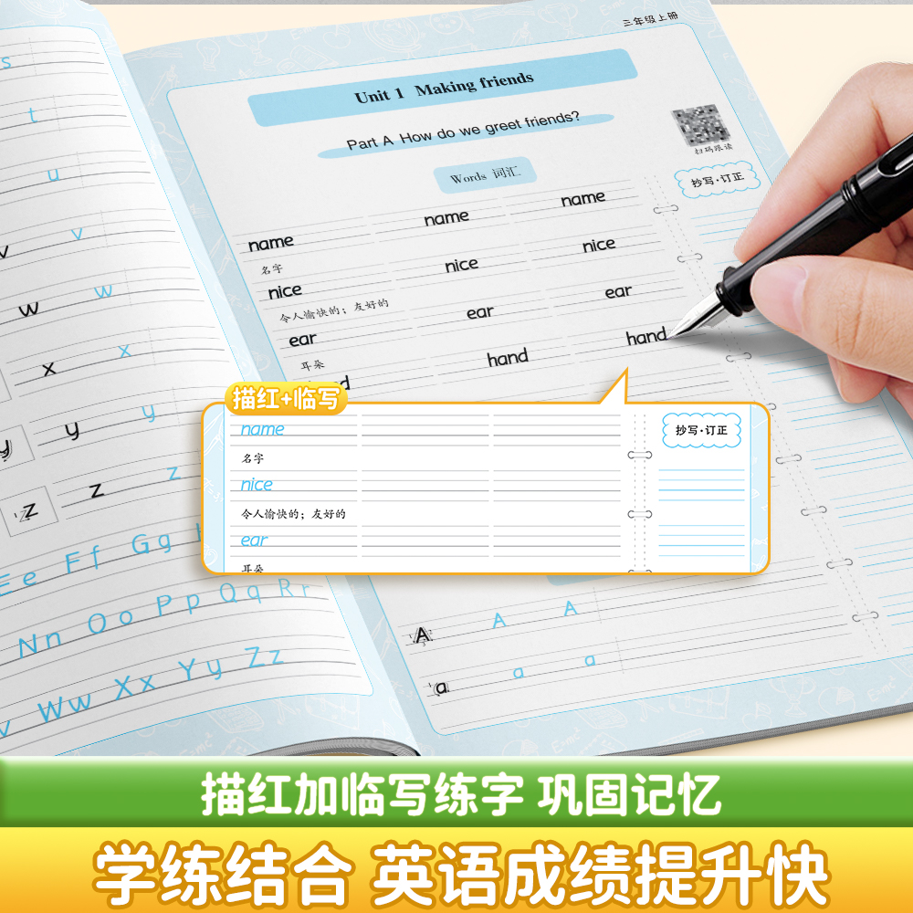 跟读单词短语描红练字本 6年级PEP3起点衡水体练字帖英语字帖课本同步扫码 2025新小学人教版