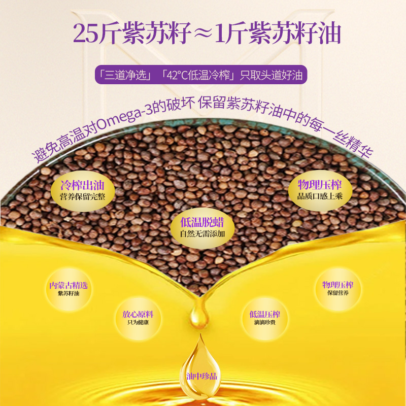 明大妈有机纯紫苏籽油紫苏油苏子油食用油低温冷榨口服官方旗舰店