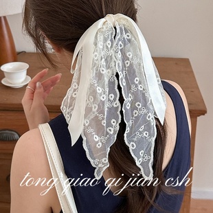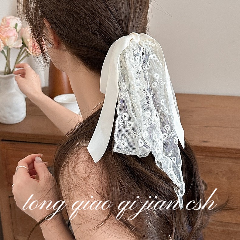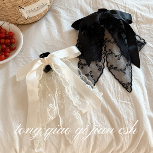 法式 蕾丝花边飘带蝴蝶结抓夹后脑勺盘发马尾夹高级感复古优雅发饰