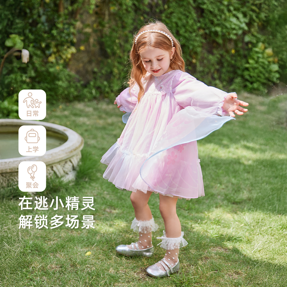 出游小童网纱裙儿童连衣裙 女童公主裙宝宝洋气A字裙秋装 7A抗菌