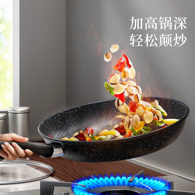 麦饭石平底锅牛排煎锅不粘锅家用煎饼锅小煎蛋锅电磁炉烙饼深煎锅