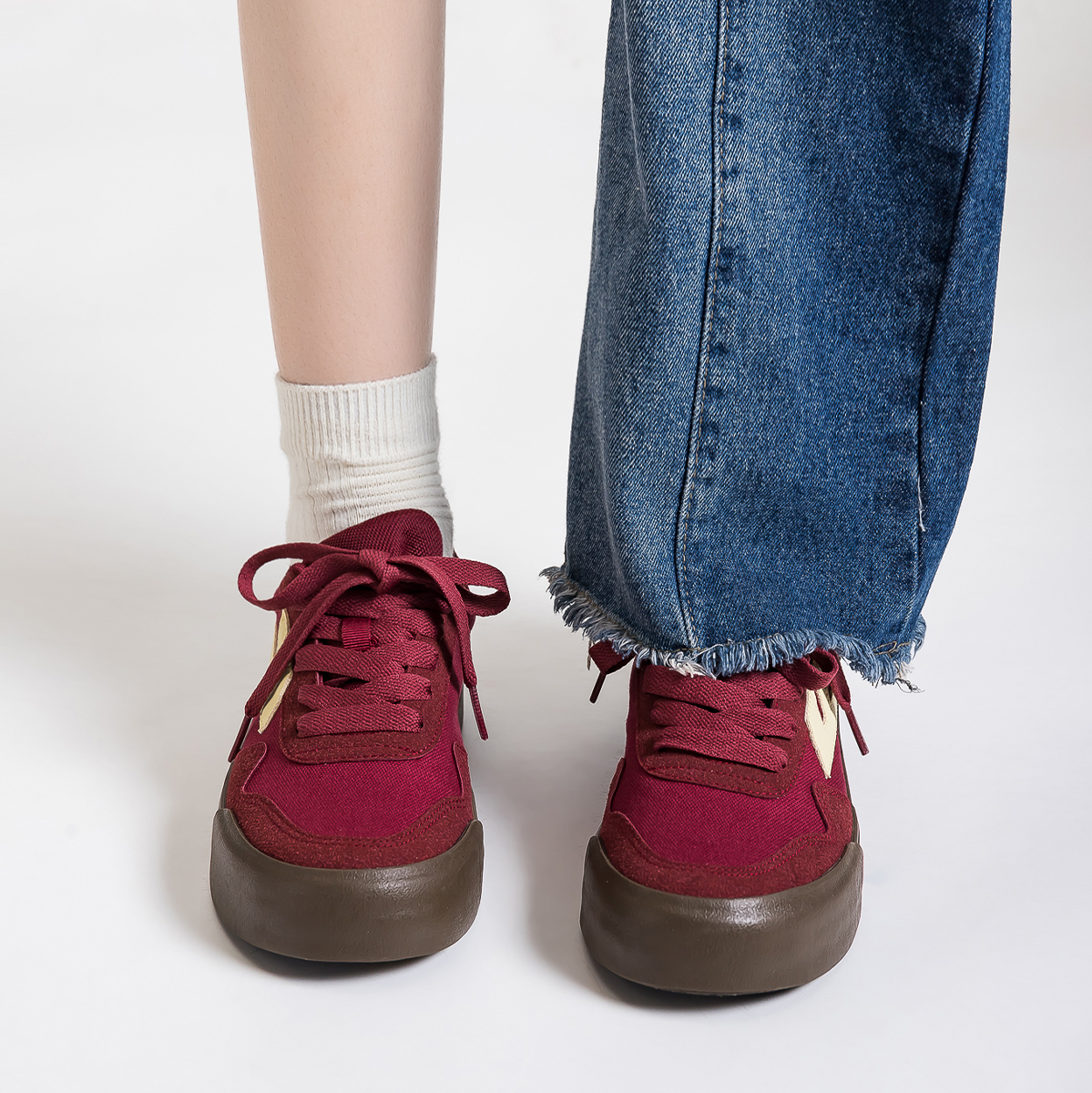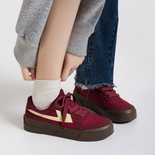 新品 2025年秋季 皮面红色百搭休闲 学生厚底增高运动板鞋 乔丹女款