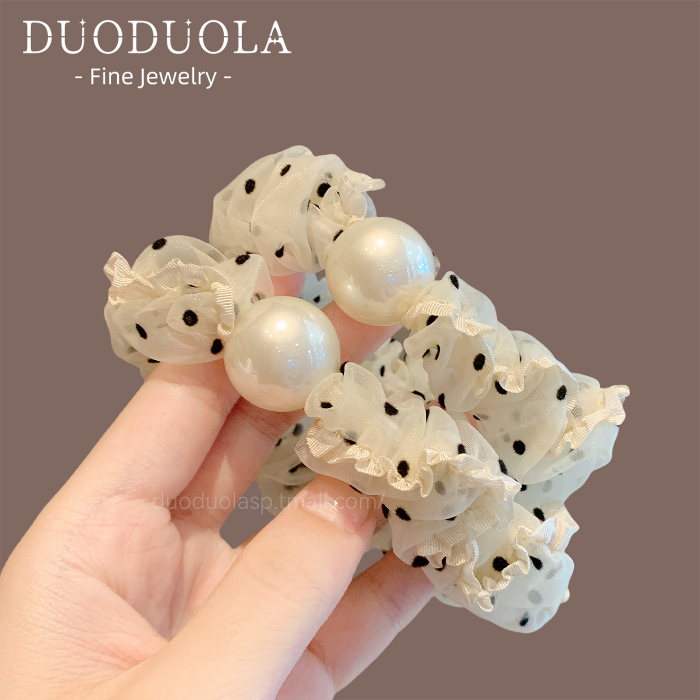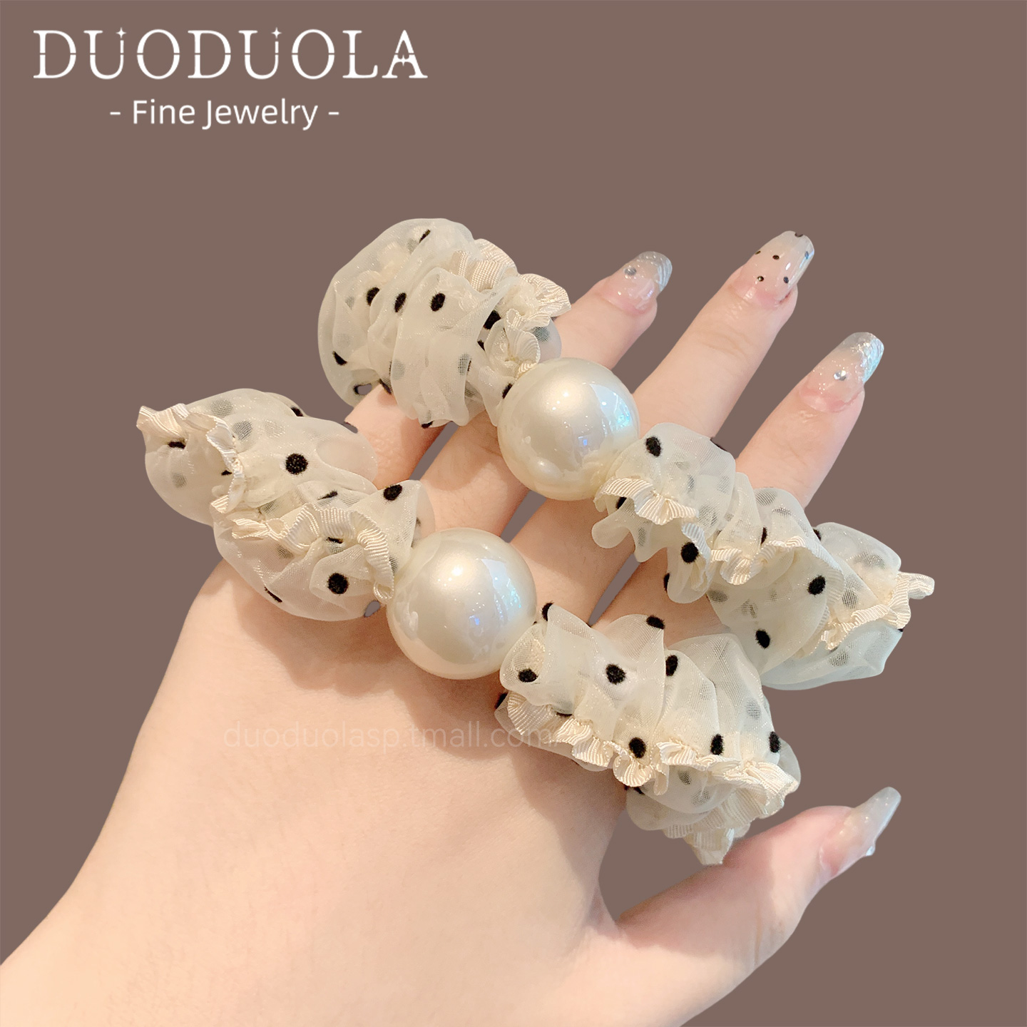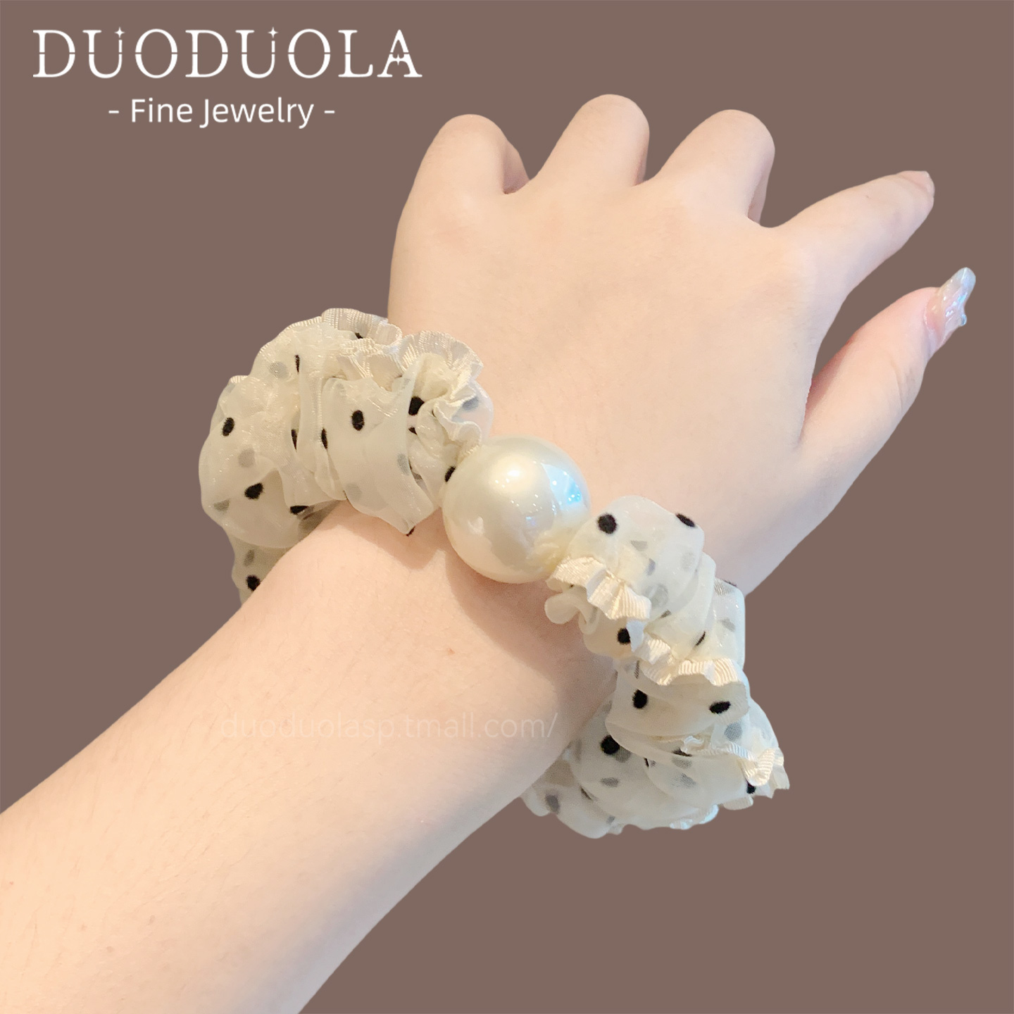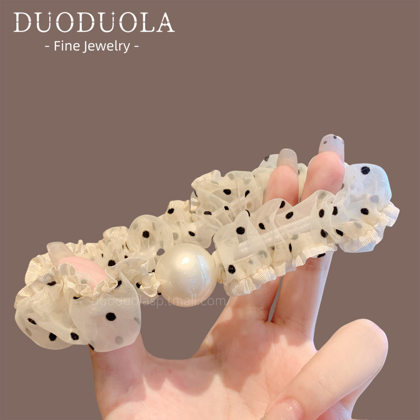 川野法式 优雅百搭扎高丸子头皮筋头饰发饰 双层波点大肠发圈女新款