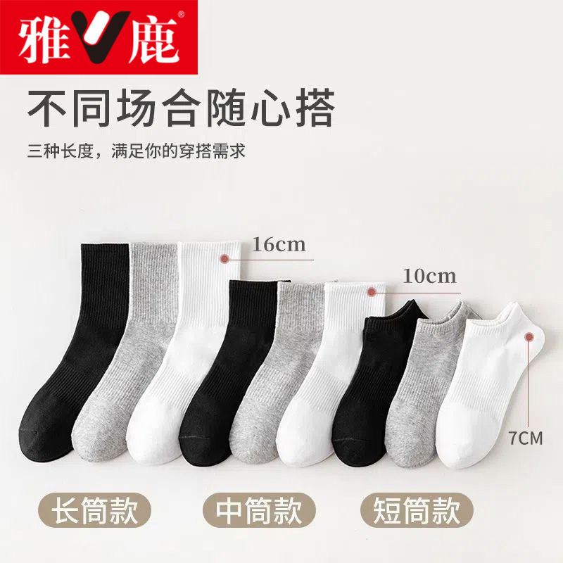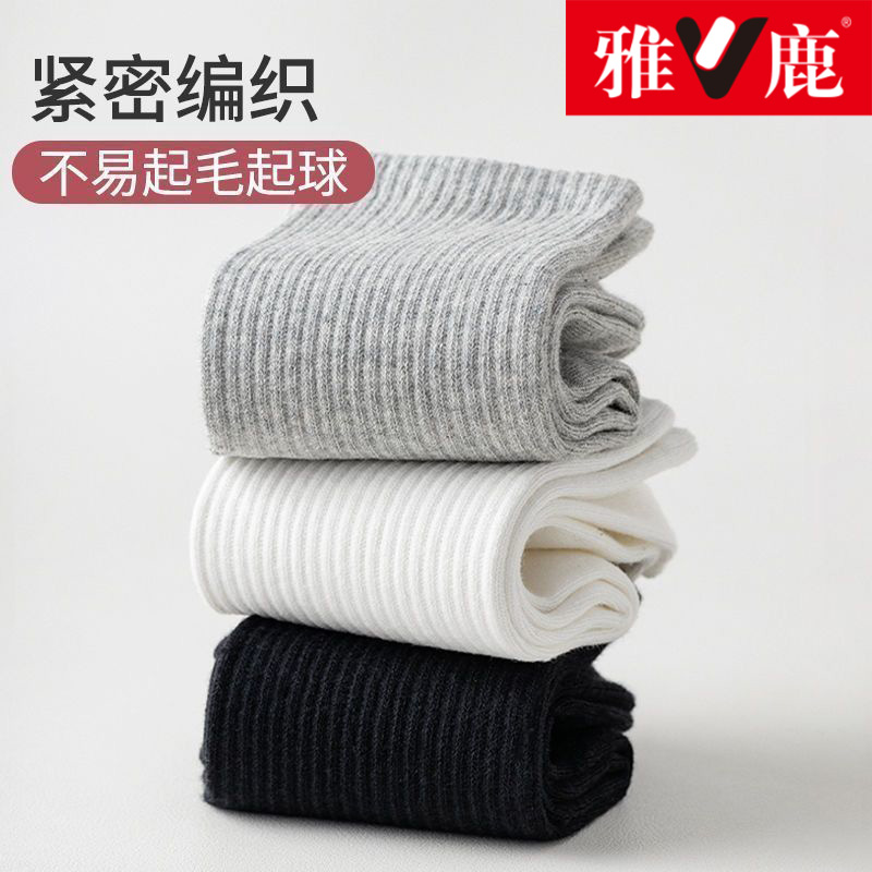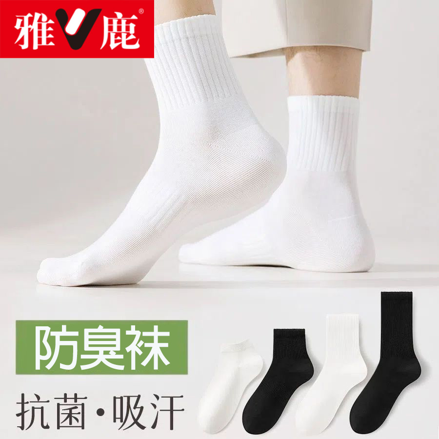 雅鹿秋冬季 透气中筒袜吸汗防臭袜子7a抗菌纯色长袜男 运动袜子男士