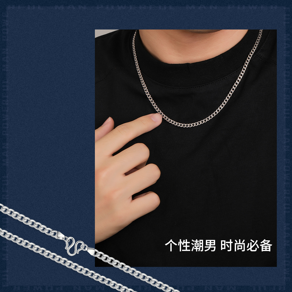 秋冬吊坠项链男士 简约小众百搭男生配饰 设计感潮流日常卫衣链美式