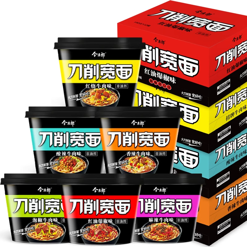 今麦郎刀削宽面桶装 非油炸方便面整箱12桶红烧香辣牛肉速食泡面