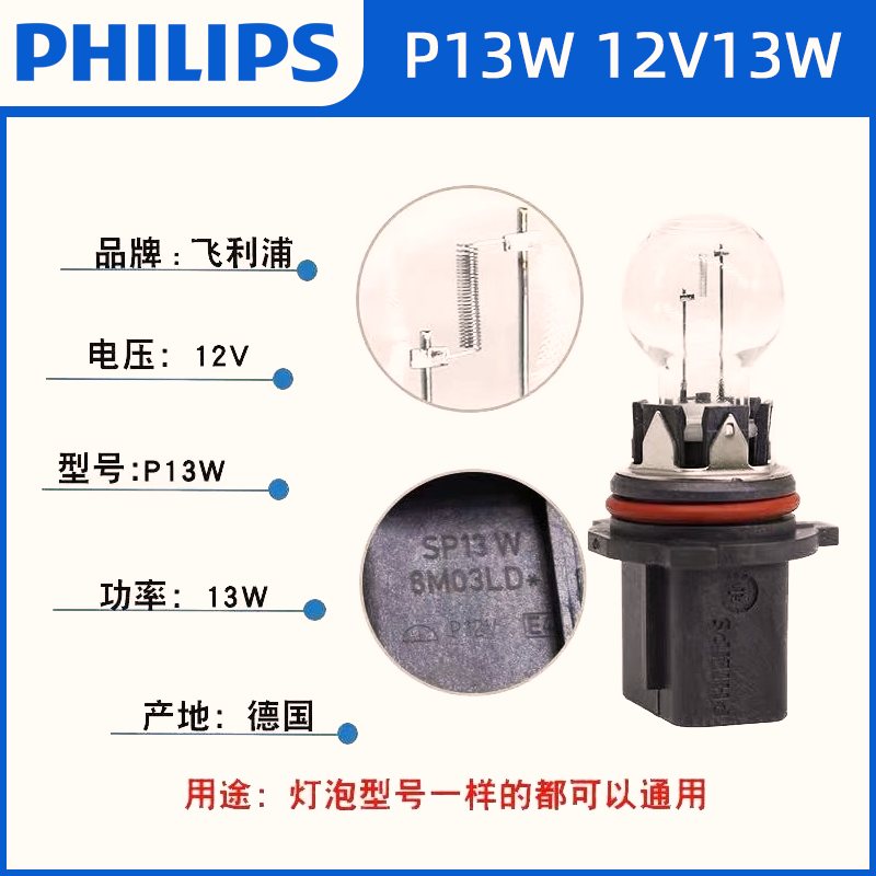 飞利浦原厂日行灯泡P13W前雾灯适配翼博斯巴鲁XV劲畅海马M6科迈罗
