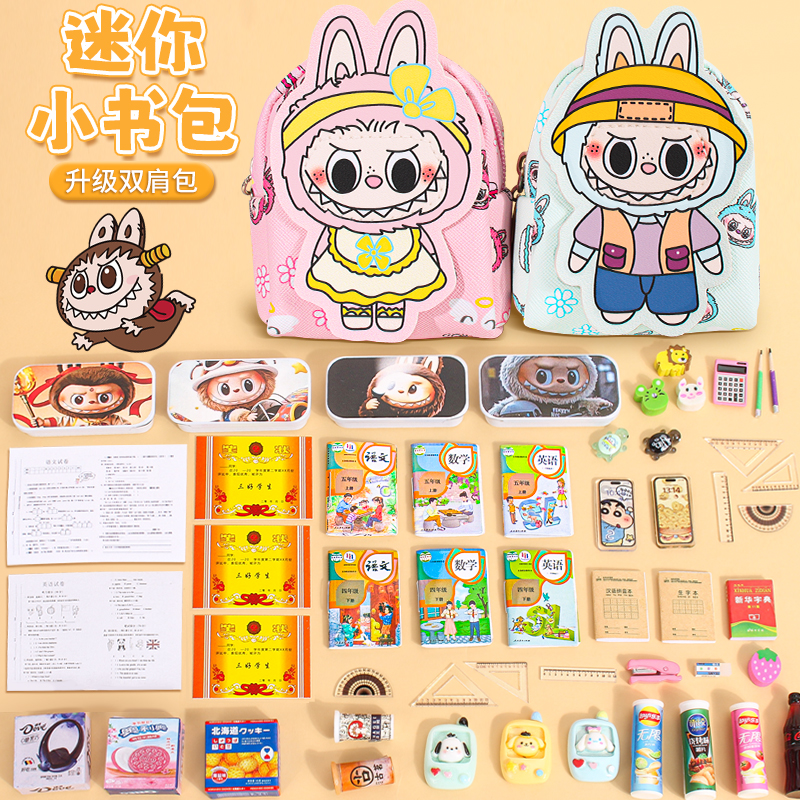 网红拉布布迷你小书包儿童仿真文具全套装 微缩模型女孩过家家玩具