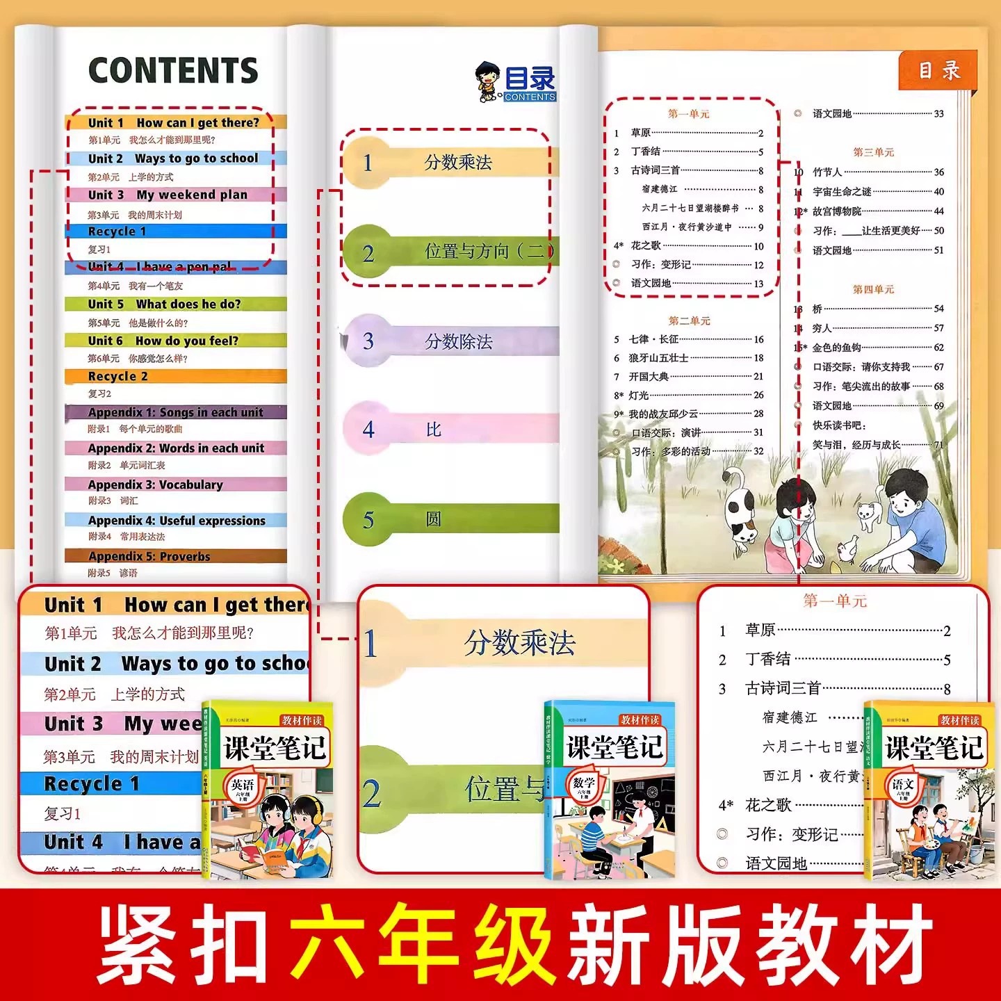 2025新版 教材全解同步练习册随堂笔记教材解读课本原文一课一练课前预习复习教辅书 课堂笔记六年级上册语文数学英语全套人教版