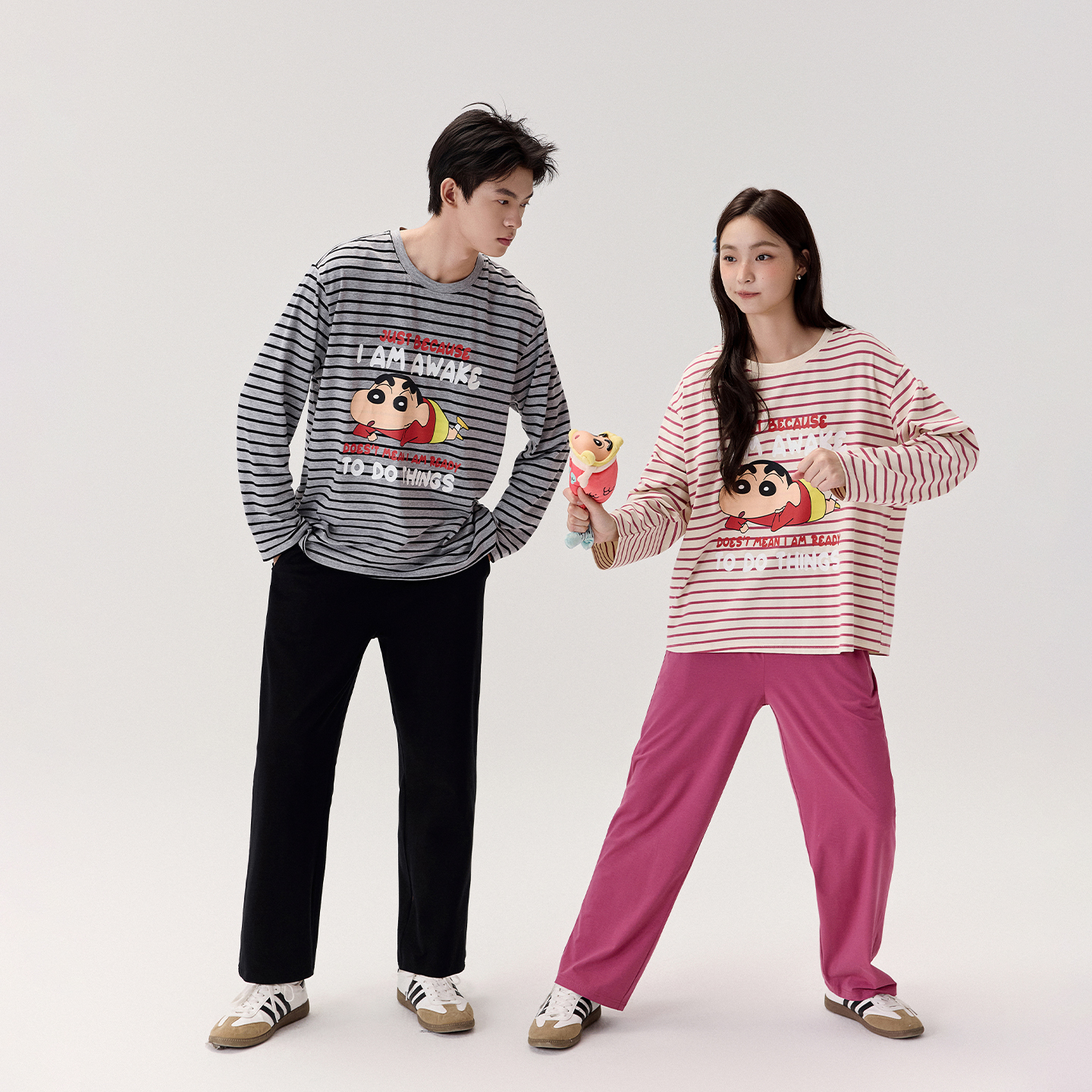 条纹保暖牛奶绒女家居服套装 Gukoo 果壳睡衣女卡通印花新款