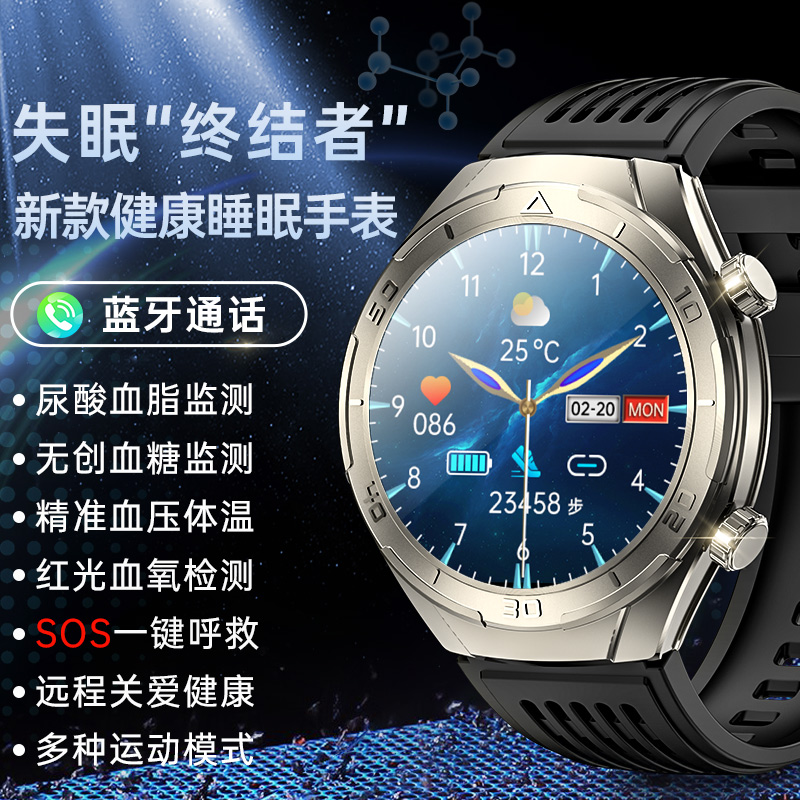 VISIKE高精度无创测血糖血压尿酸血脂智能手表老人心率血氧心电图24小时动态监测量仪通话运动健康手环