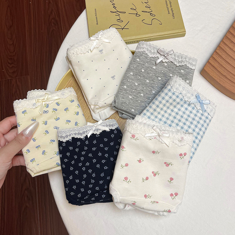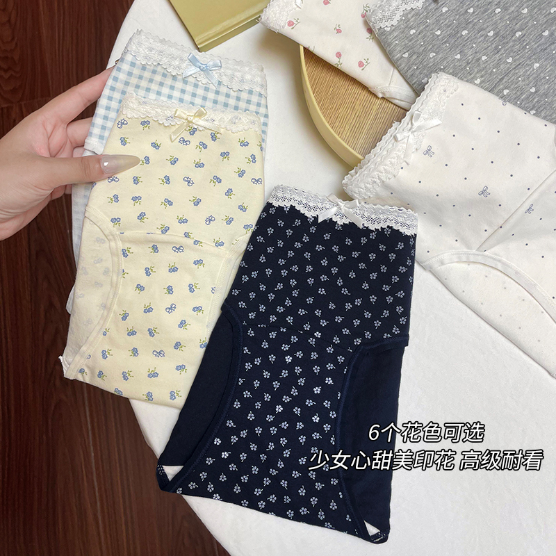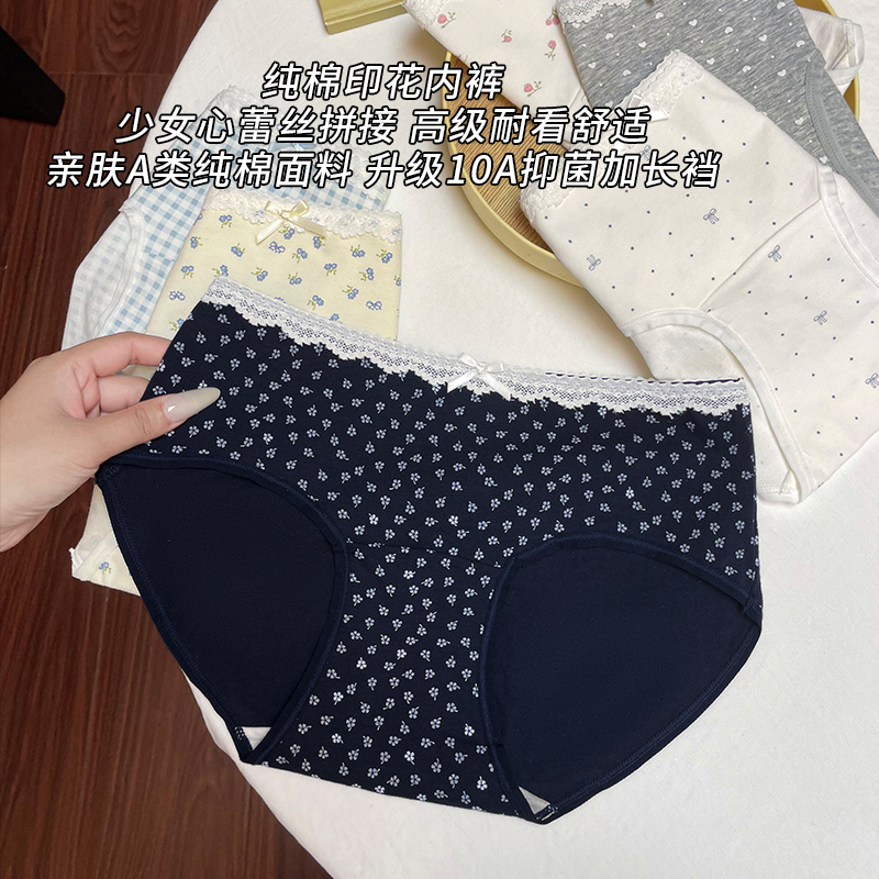 瑶瑶闺蜜可爱甜美风碎花波点棉质内裤 女10A抗菌加长裆中腰三角裤