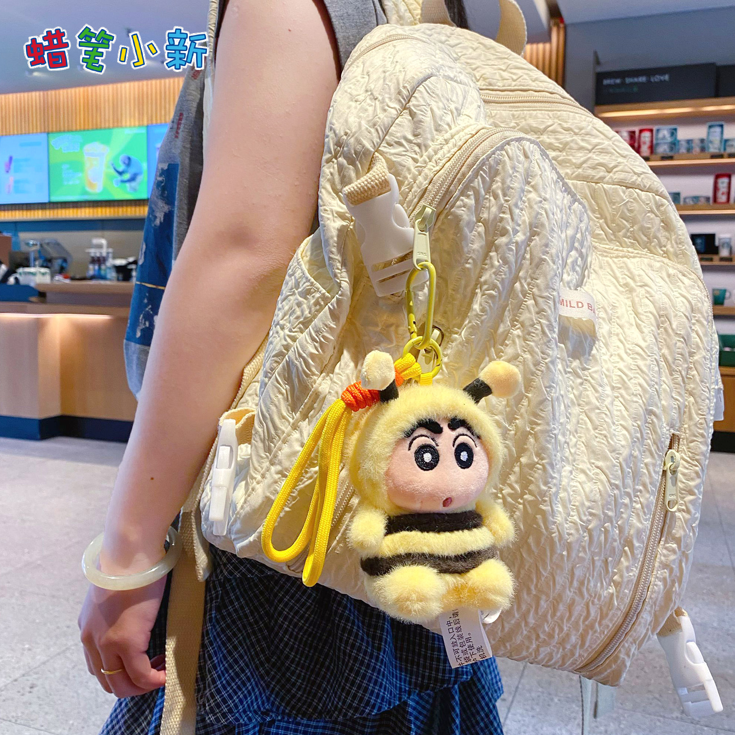 正版 蜡笔小新毛绒手绳扣创意汽车钥匙扣链公仔玩具小礼品书包挂件