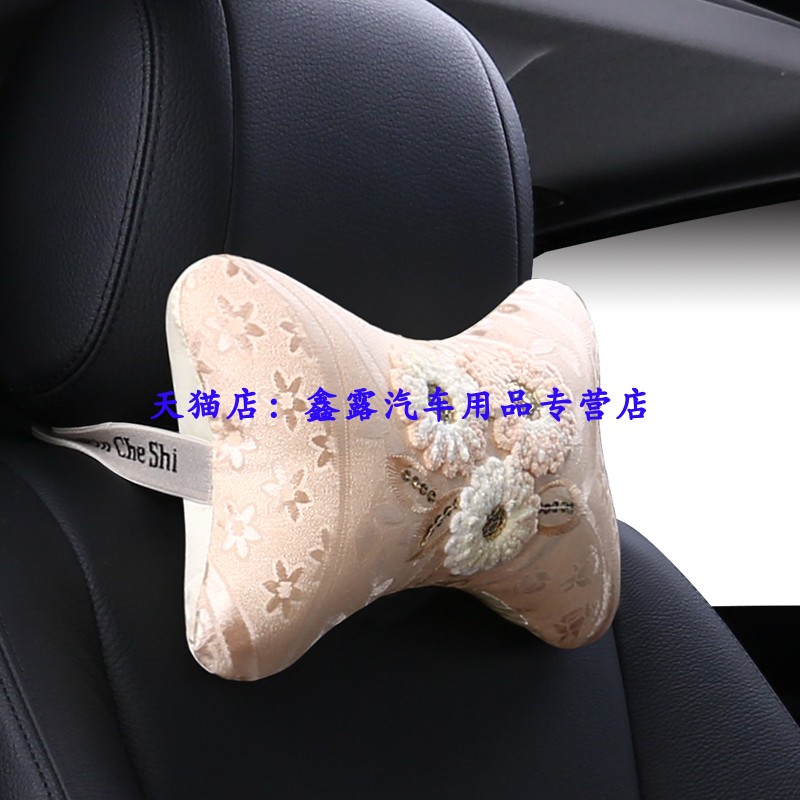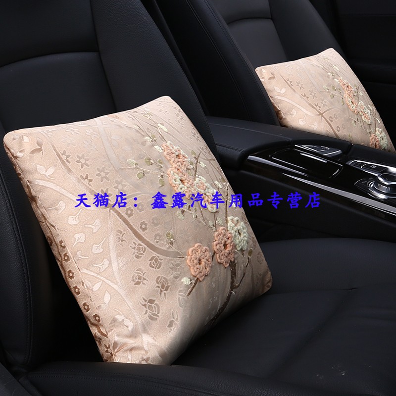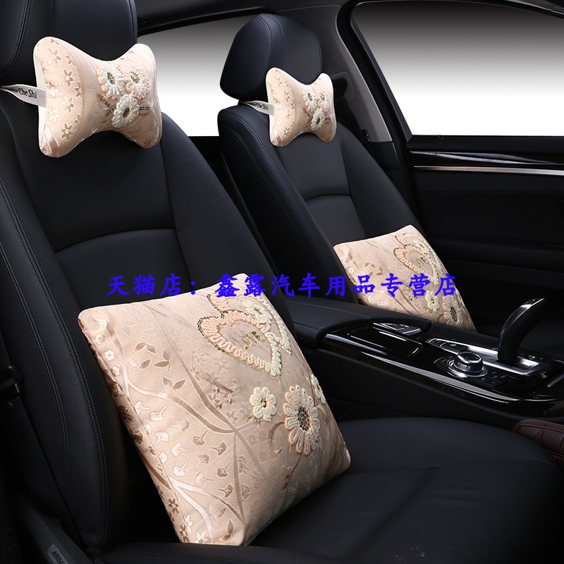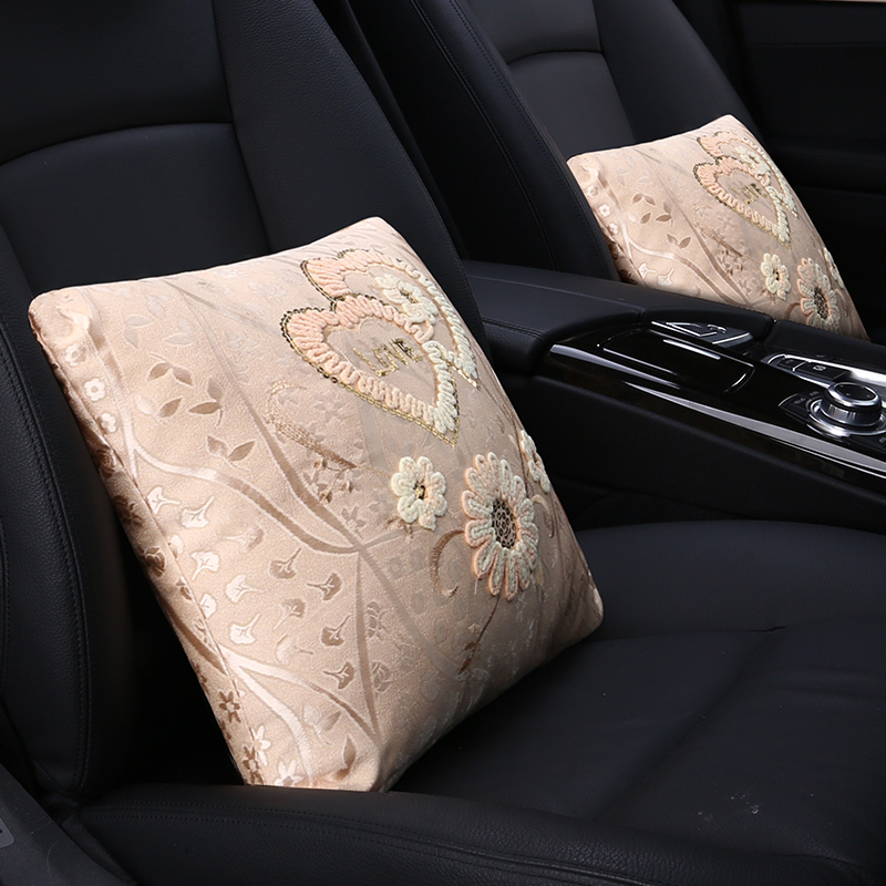 2025新款 绣花可爱汽车抱枕四件套车用靠垫腰靠车内头枕护颈枕一对