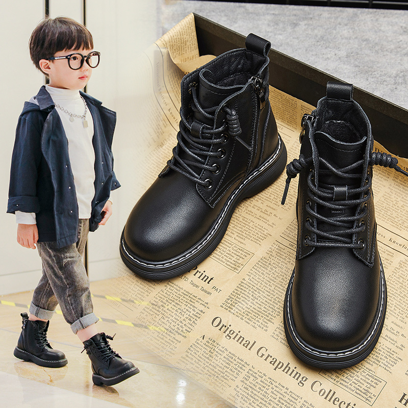 雪地靴真皮二棉鞋 秋冬季 加绒男孩童靴 子2025新款 男童马丁靴儿童鞋