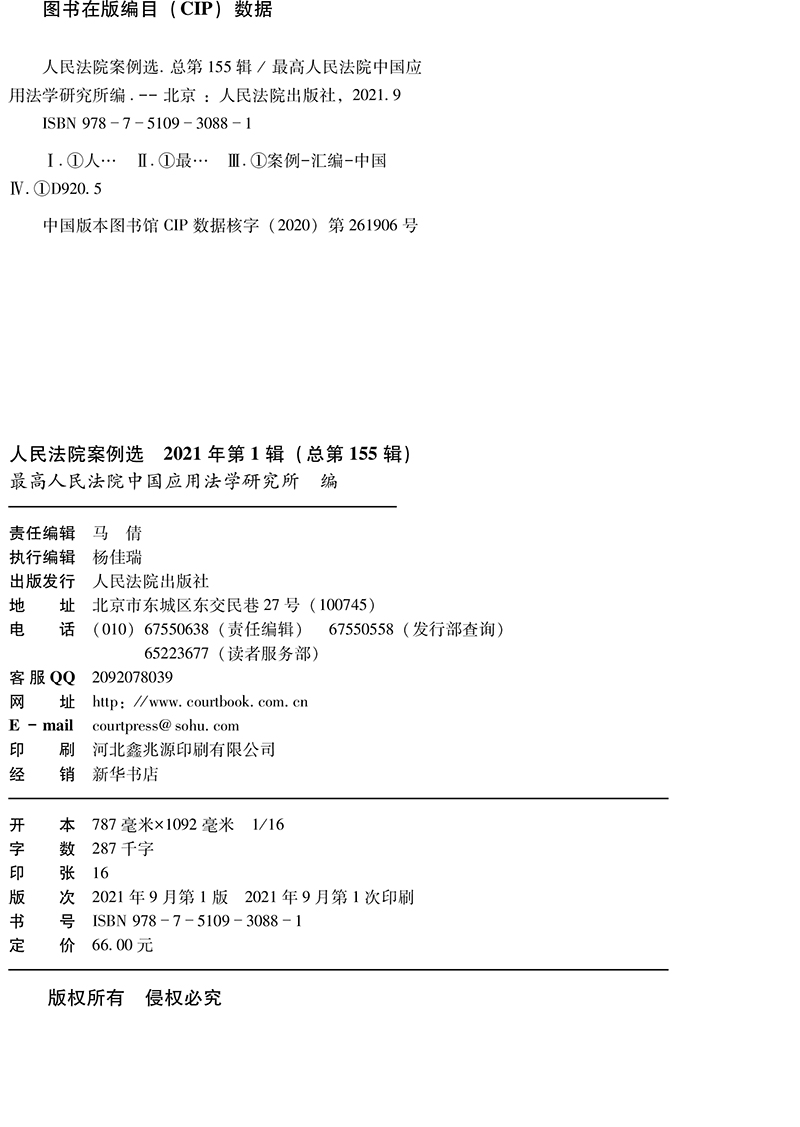 案例精析 总第155辑 典型案例裁判要旨审判标准指导案例 审判指导参考 办案参考法律书籍 2021年第1辑 司法实务 人民法院案例选