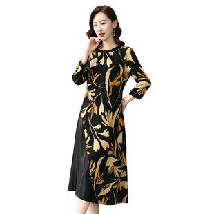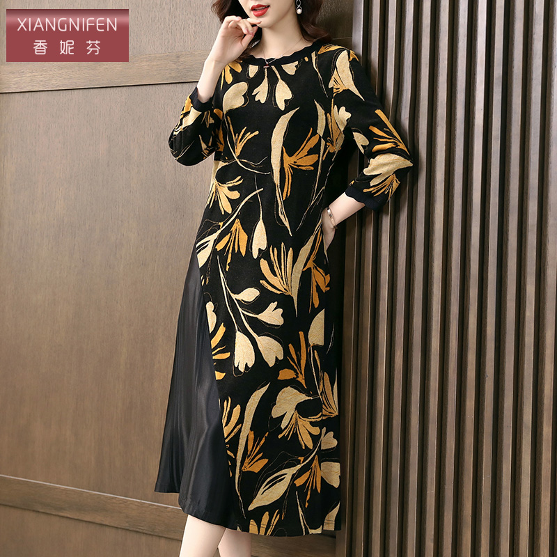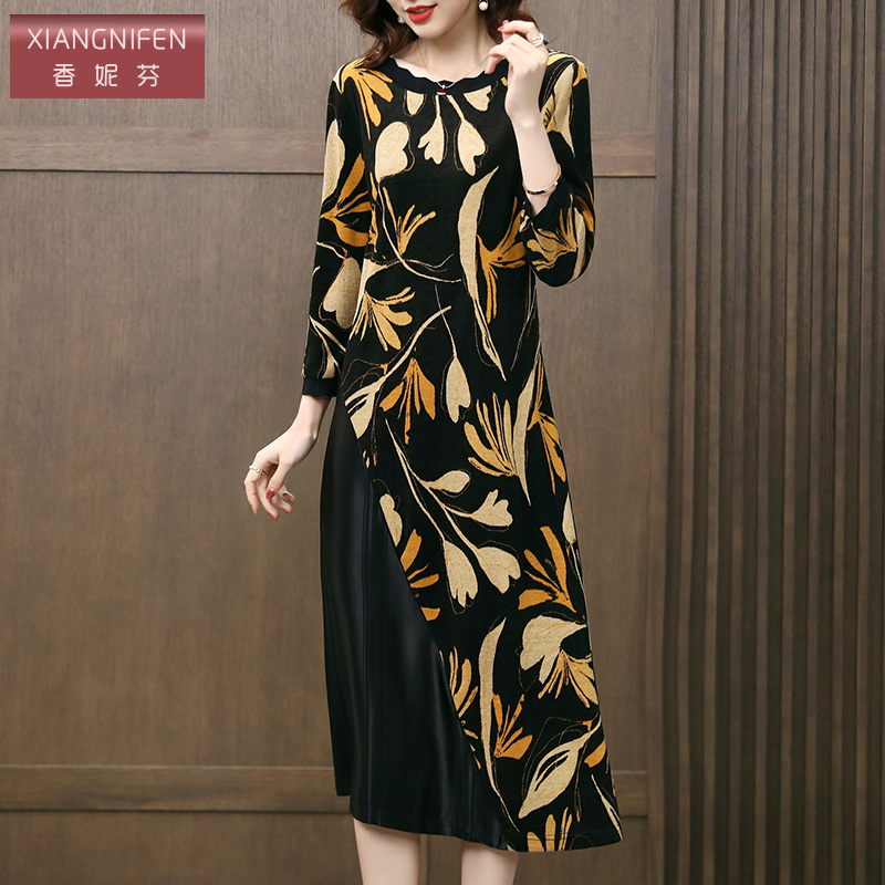 香妮芬高贵优雅妈妈连衣裙女2025新款 气质拼接阔太太贵夫人裙 秋季