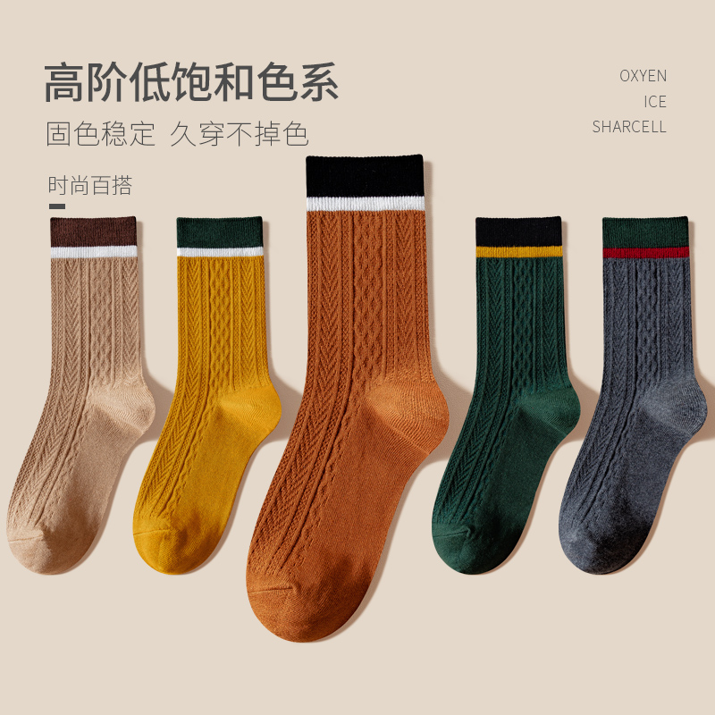 袜子女中筒袜秋冬ins日韩2025新款 拼色美拉德咖色复古色系女长袜