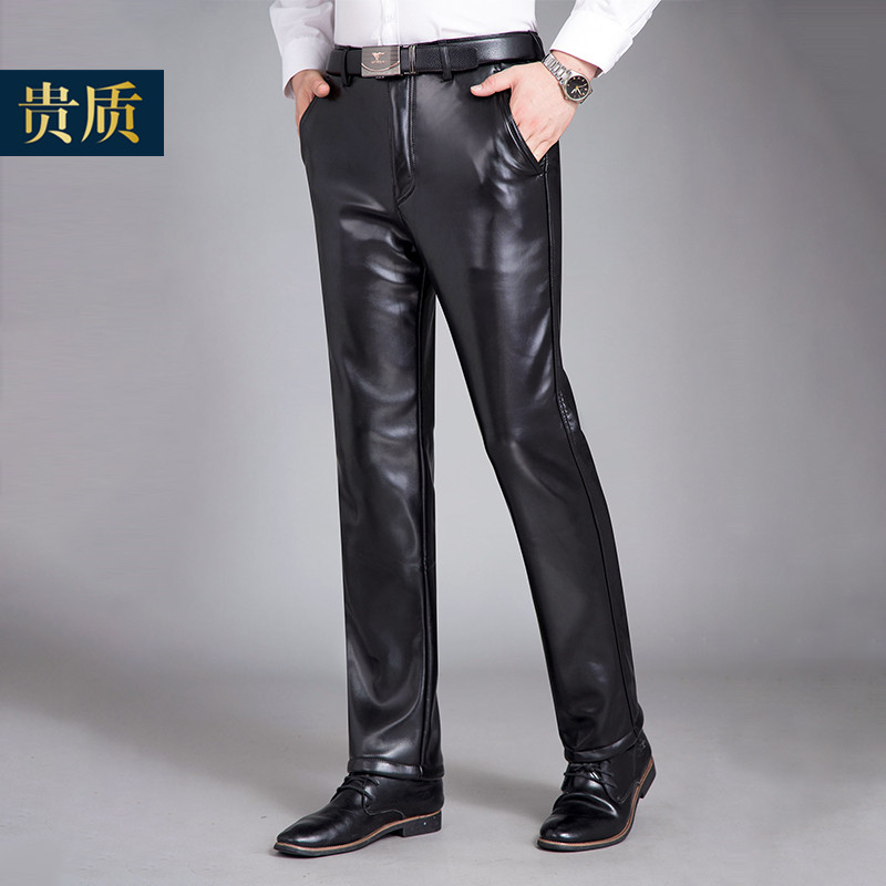 保暖机车摩托车青年防风防水男士 男加绒加厚弹力冬季 小脚 皮裤 修身