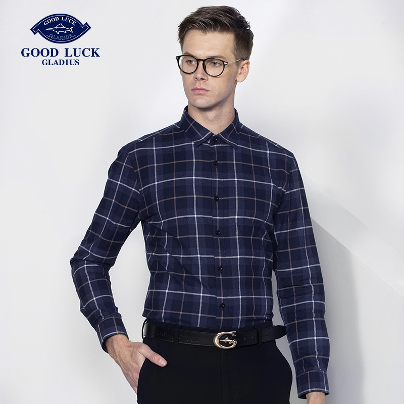 休闲打底上衣服男格子长袖 德鲨男装 新款 秋季 衬衣BR11506 棉质衬衫