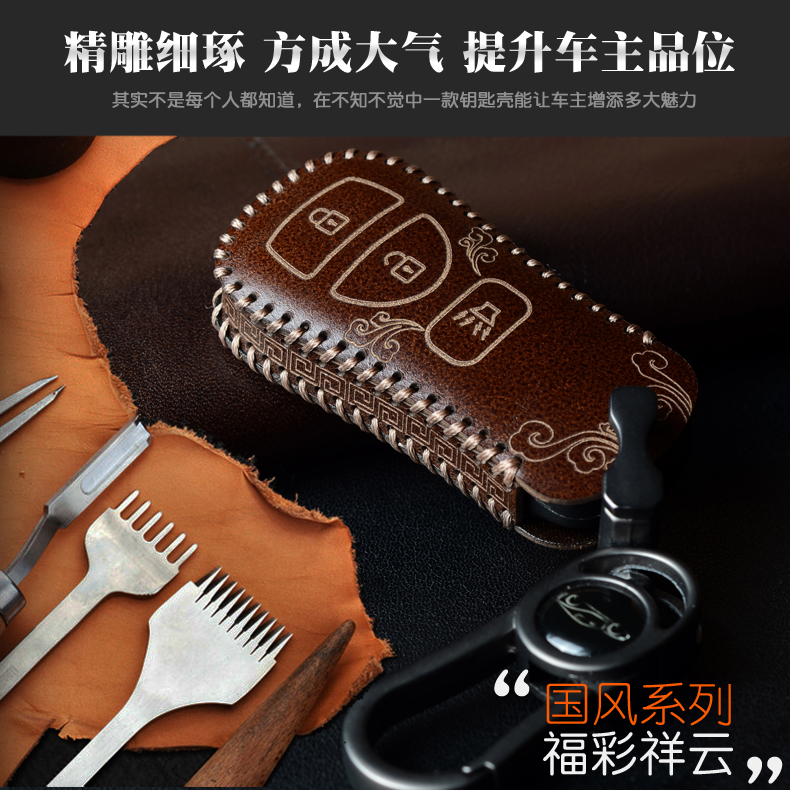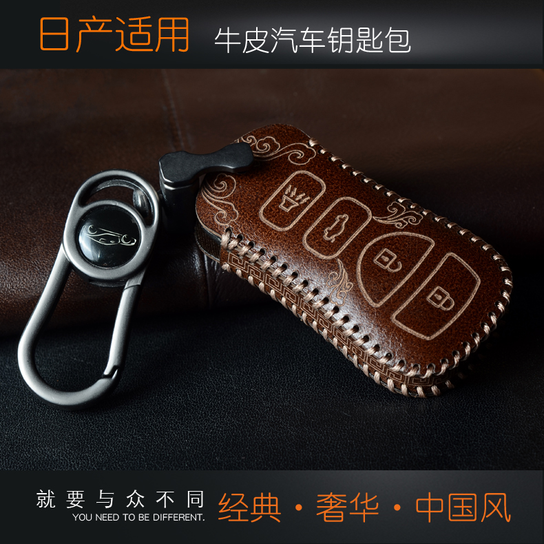 适用于尼桑新骊威轩逸日产启辰D50 钥匙包复古牛皮遥控器套 R50X