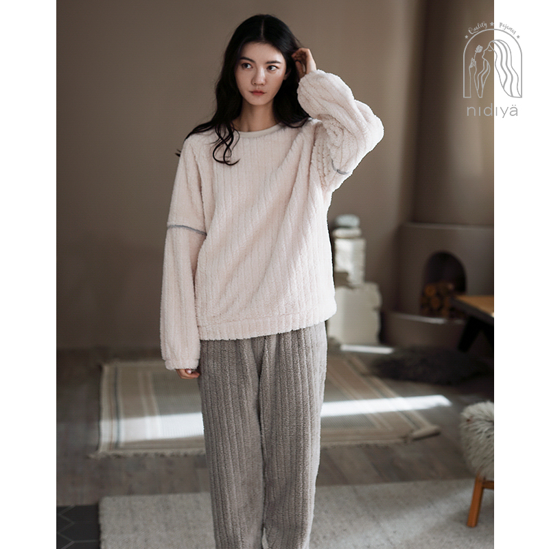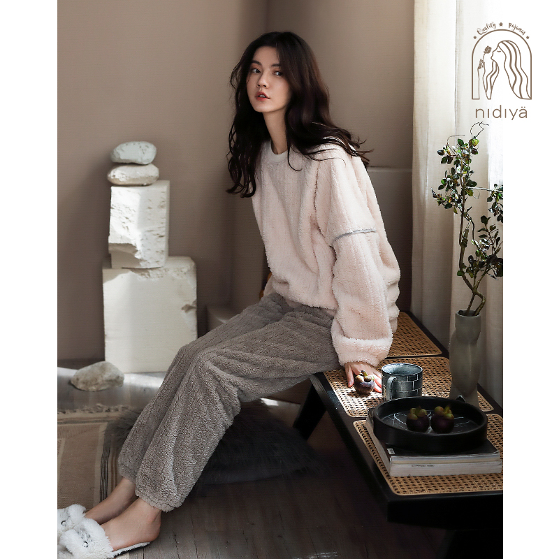 加绒有钱花半边绒保暖家居服套装 睡衣女秋冬新款 花花梦园 yso