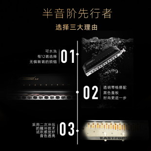 东方鼎先行者12孔无膜半音阶口琴C调T1248NV学生用入门专业演奏