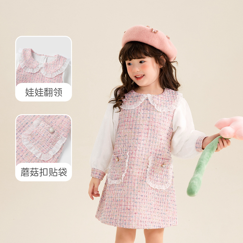 修身 假两件小香肌理连衣裙复古风长袖 珊蓓 新款 衣纱布菲2025秋冬装