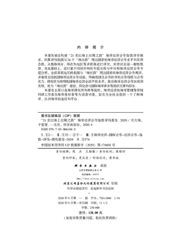 海洋经济合作指数评估报告2020 21世纪海上丝绸之路