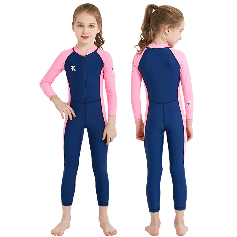 儿童泳衣女童男童连体长袖 夏中大童速干防晒游泳衣女孩男孩温泉装