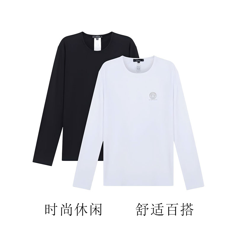 白色打底衫 秋冬季 潮流字母上衣服A t恤男2025新款 班尼路双面绒长袖