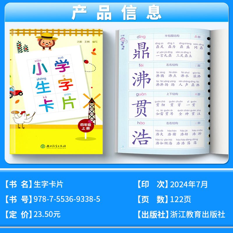 社小学4年级上册语文同步练习汉语学习生字卡片教材辅导书籍配套新改版 现货2026新版 浙江教育出版 四年级上册 课本 小学生字卡片