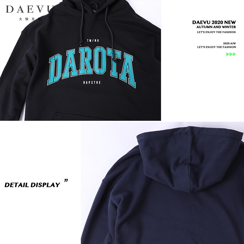 帽衫 拼接小logo印花插肩袖 美式 情侣加绒连帽卫衣 Achock官方店