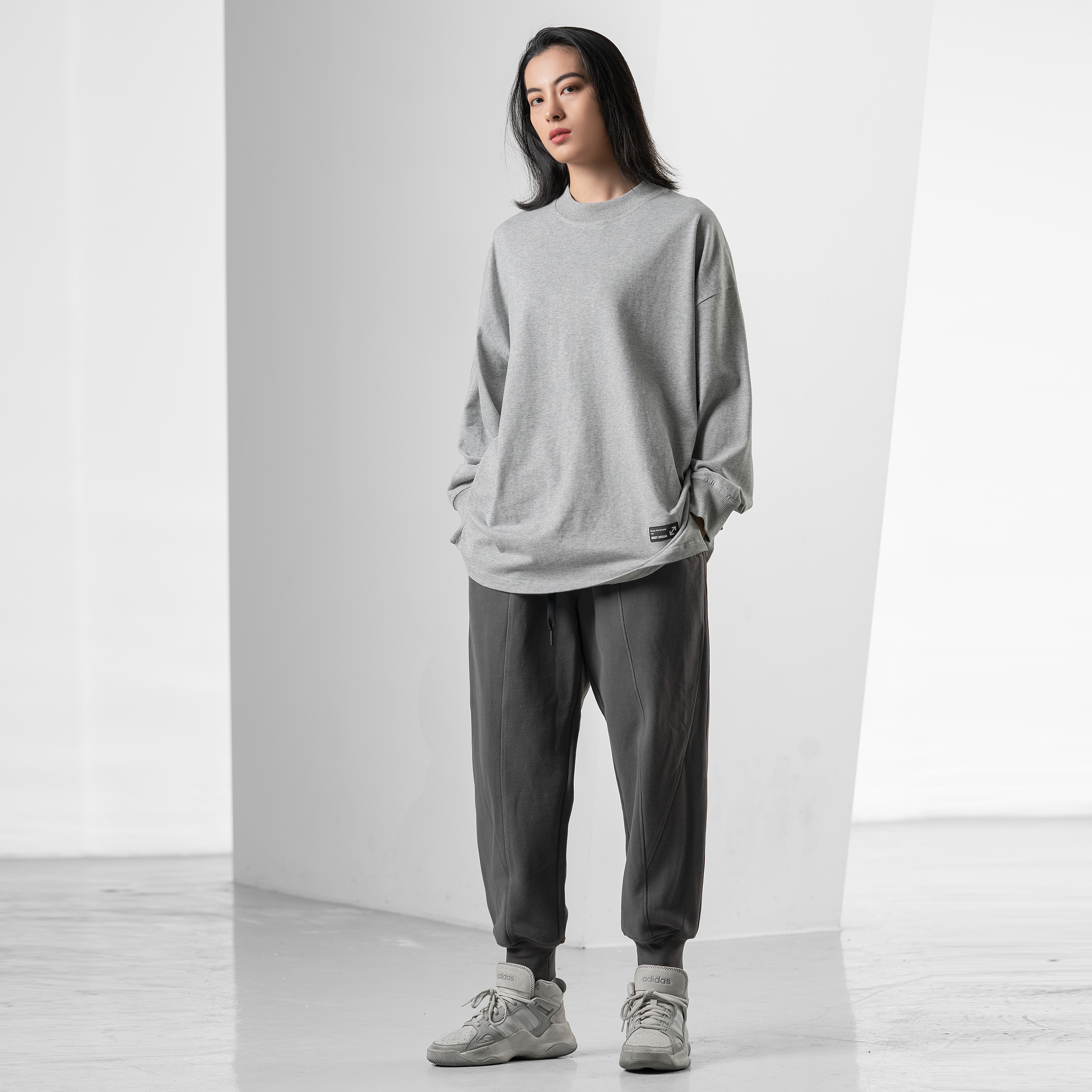加绒街舞穿搭褶皱宽松休闲长裤 女秋冬季 子 灰色运动卫裤 自然涩美式