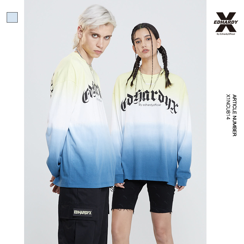 t恤体恤衫 渐变长袖 上衣潮 春秋梵文字母图腾印花韩版 EdHardyX新款