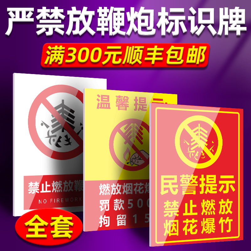 禁止燃放烟花爆竹警示标识牌城区小区物业学校幼儿园周边严禁燃放鞭炮禁止吸烟提示牌消防安全宣传标语标志牌