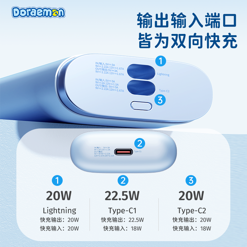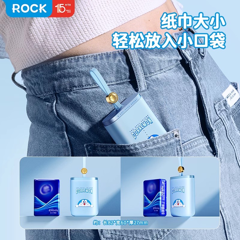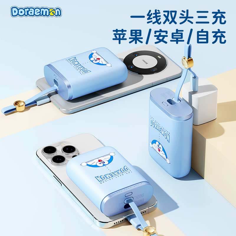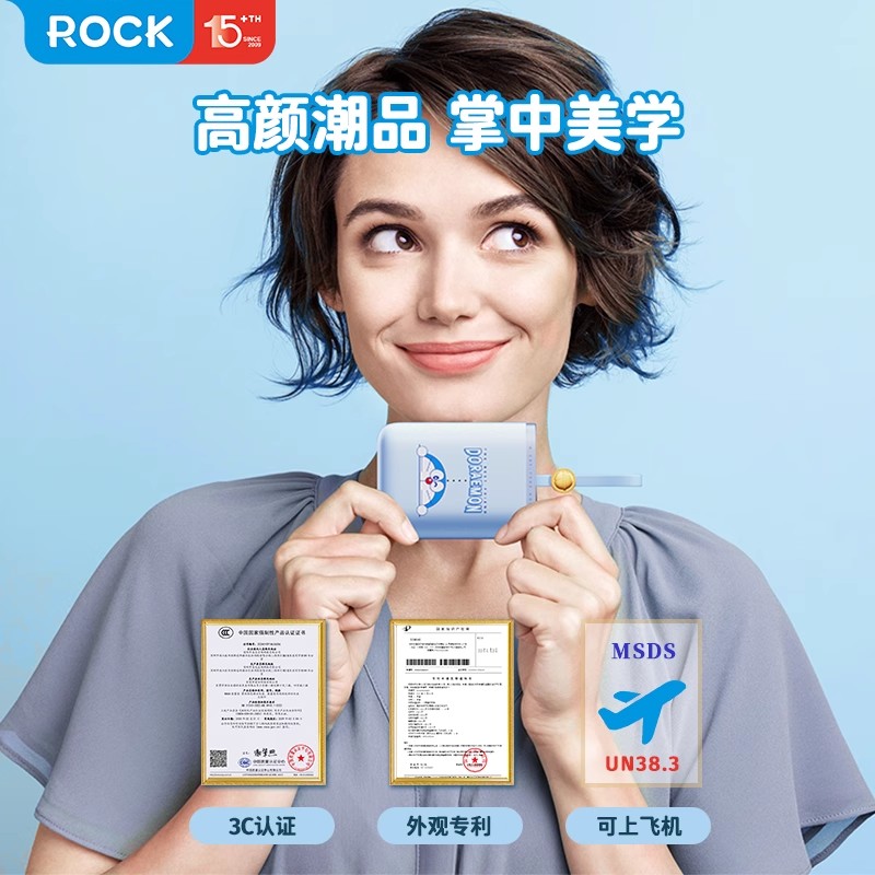 ROCK哆啦A梦充电宝自带线10000毫安快充超大容量小巧便捷无线移动电源闪充苹果专用可上飞机 新国标3c认证
