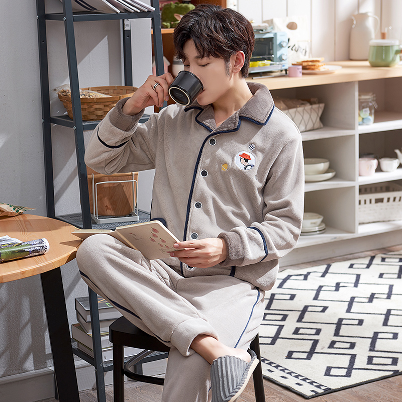 可外穿法兰绒秋冬家居服套装 大码 加厚保暖男士 清仓捡漏睡衣男冬季