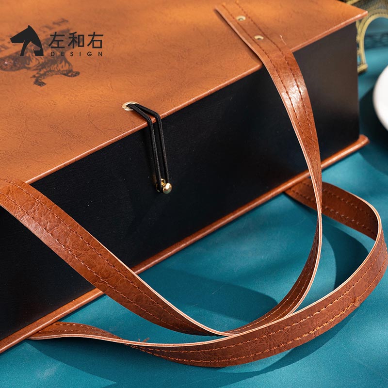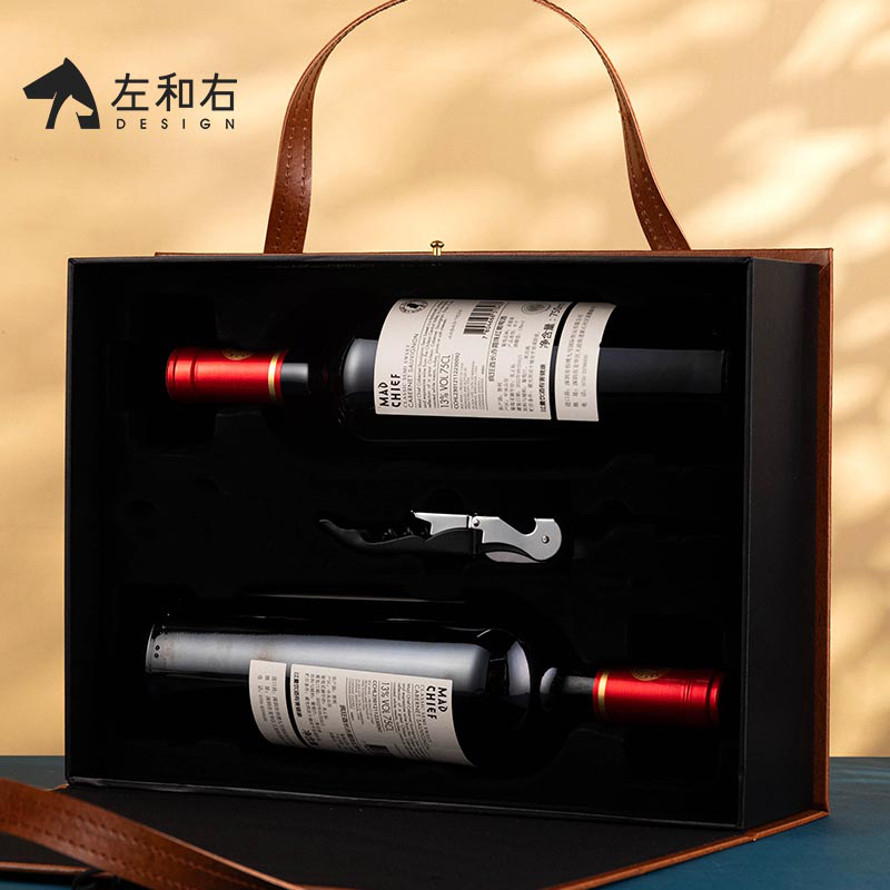 皮盒葡萄酒包装 高端红酒盒双支装 盒空盒 礼盒新款 左和右红酒包装