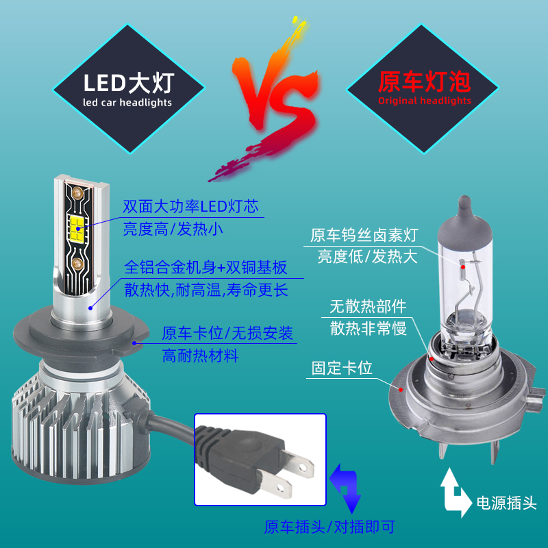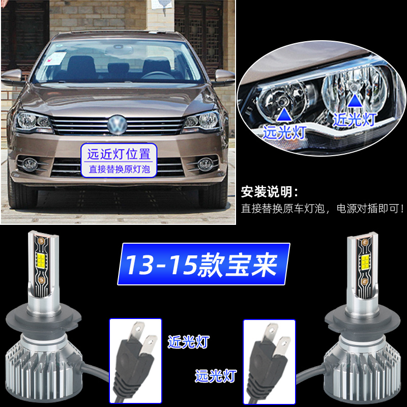 配件超亮远光 14大众宝来前大灯LED宝来近光灯灯泡改装 适用13 15款