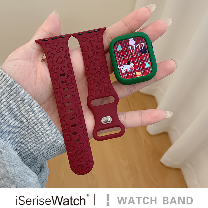 iserisewatch适用于iwatchs11表带高级s10applewatchs9硅胶可爱豹纹花纹se苹果智能手表表带45mm女新款 春夏红
