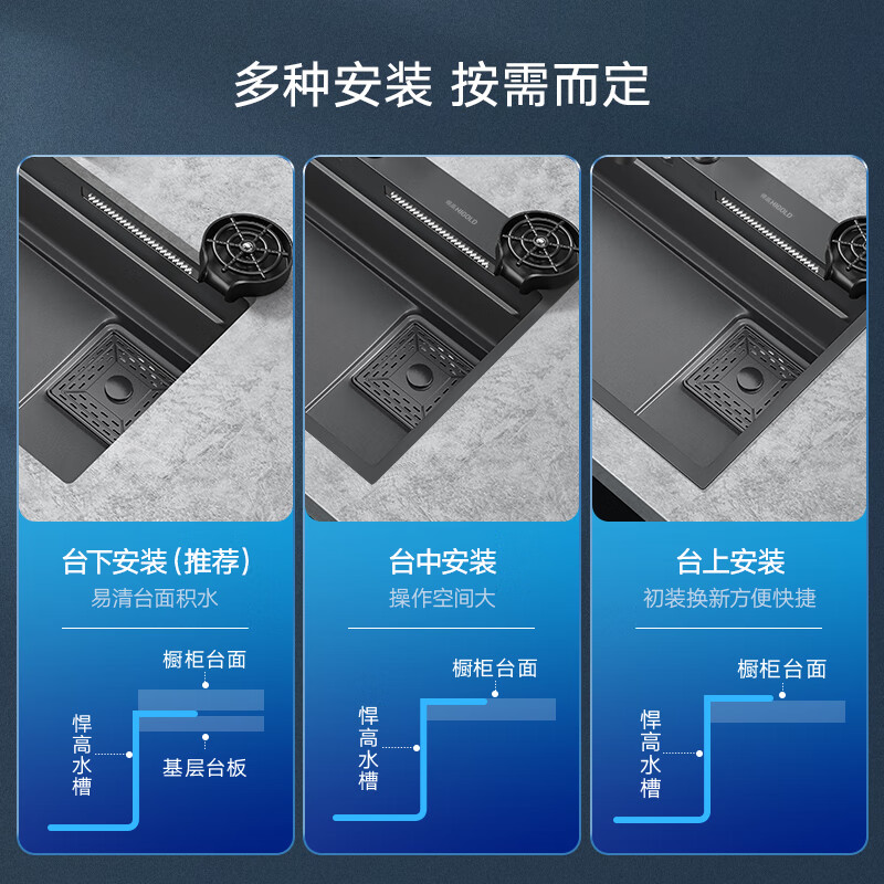 悍高飞雨瀑布厨房手工水槽纳米洗碗洗菜盆大单槽龙头不锈钢套装