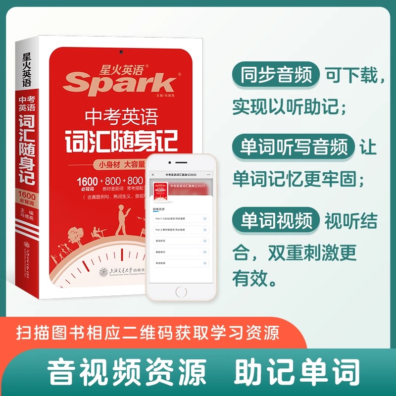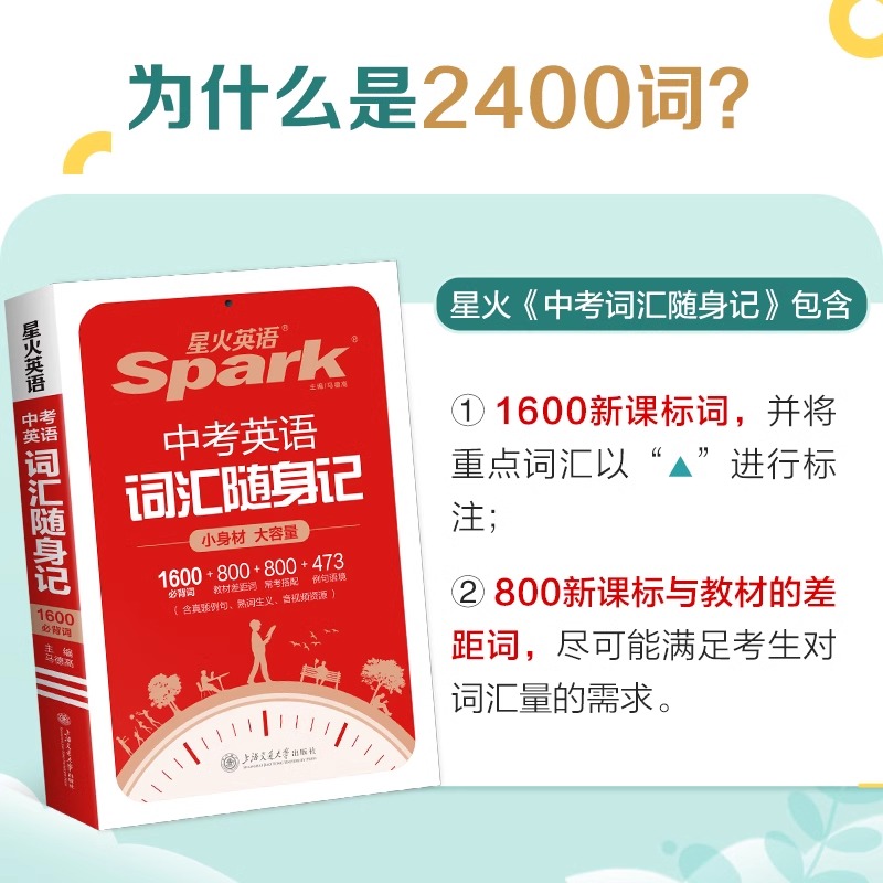 星火英语中考英语词汇随身记初中单词记背神器大全便携口袋书2400词1600课标词2024初一二三七八九年级高频核心速记手册默写本资料