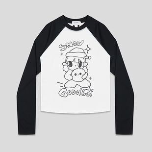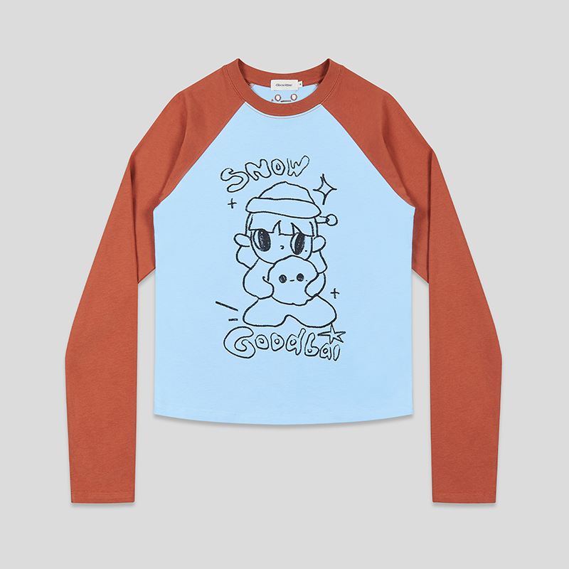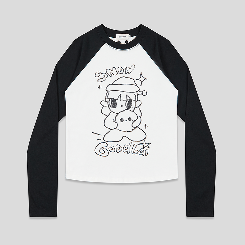 GOODBAI T恤 GOODEES滚雪球手绘图案印花图案插肩长袖