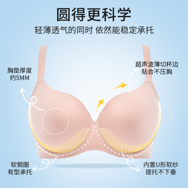 桑扶兰无痕内衣女大胸显小聚拢防下垂收副乳薄显瘦文胸 小奶皮