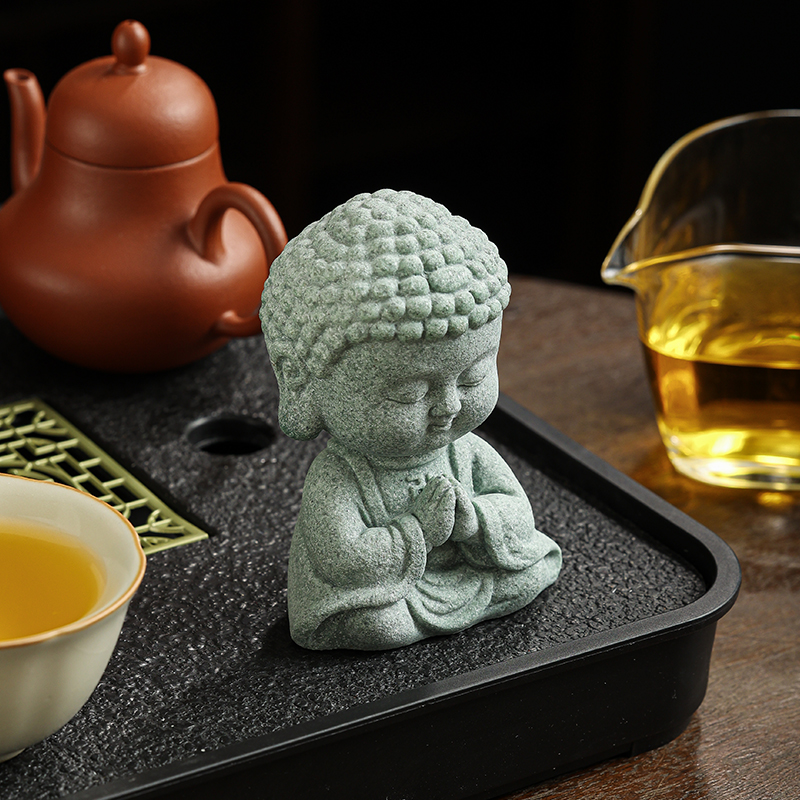 青砂石佛像小茶宠摆件精品可养高档桌面茶台茶微景观鱼缸装 饰品
